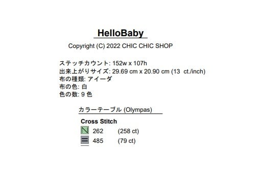 『Hello Baby』誕生記念刺繍図案